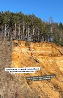 🌳Потихоньку, по одной сосне, обвал склона забирает деревья🏞️